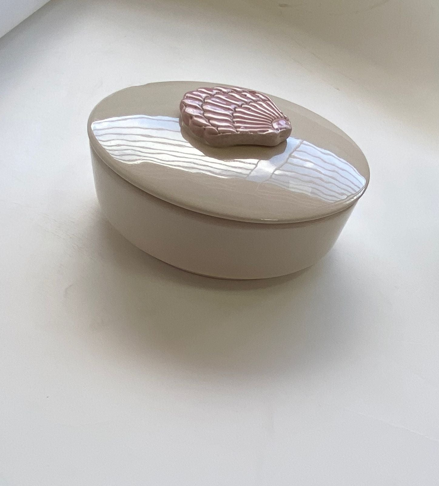 A shell boxes perfect for the storage of nuts, chocolates, jewelry, and other treasured possessions. The shell-inspired aesthetic of each box adds a natural elegance to any environment offering a visually appealing way to keep your valuables neatly arranged. These boxes are ideal for gifting or for adding a touch of coastal allure to your home decor. Height: L: 4cm Diameter: L: 11cm