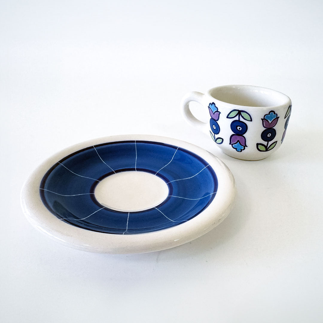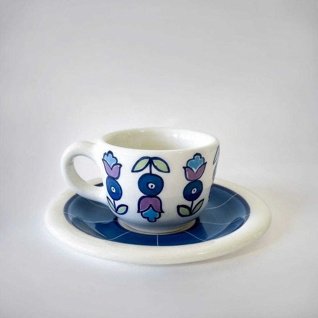 كوب قهوة تركي بتصميم زهرة عين الزرقاء وصحن
